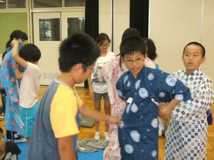 …とはいえ,子どもたちにとっては,浴衣は,これまで大人の人に「着せてもらうもの」。しかし,これを自分で着るとなると,なかなか大変です。