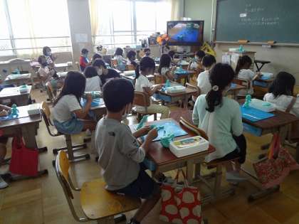 鑑賞の時には,「足が上がっていて,全力で走っている感じが伝わりました。」「応援している人が手をあげていて,一生懸命応援しているのがわかりました。」と,それぞれの作品の工夫を見付けていました。