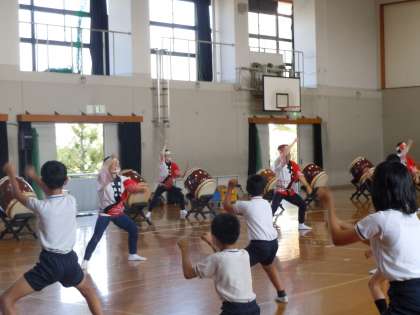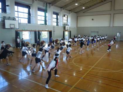 最後には,和太鼓とソーラン節のコラボレーション!写真から,子供たちの熱気が伝わるでしょうか?力強く,迫力あふれるソーラン節になりました。