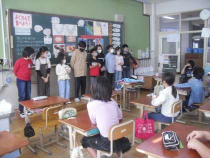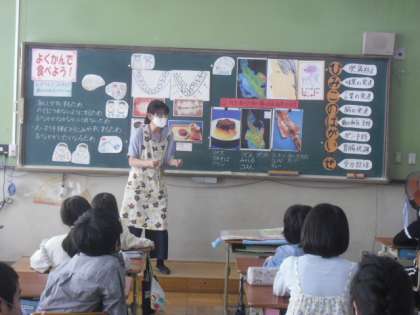 有田先生との食の学習は「よく噛んで食べよう」をテーマに,噛んで食べるとどんないいことがあるのかについて学びました。「消火しやすくなる」など,子供たちもたくさん予想しましたが,こんな合言葉が!それは「ひみこのはがいーぜ」です。ひは「肥満防止」,みは「味覚の発達」・・・続きはぜひ子供たちに聞いてみてください。そして,家族でよく噛んで食事を楽しんでください。