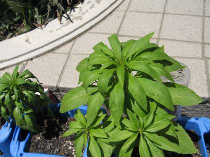 強い日差しで理科の実験用ホウセンカは萎れていますが,