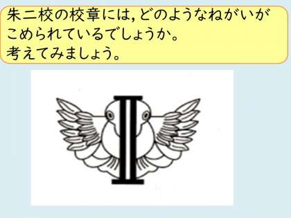 ところで,朱二校の校章の由来についてご存じでしょうか?