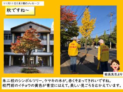 朱二校の秋といえば,シンボルツリー,ケヤキの木は今が見ごろです。