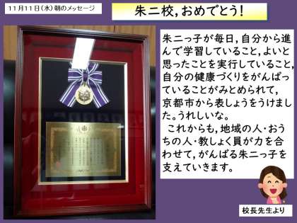 朱二校が賞をいただきました。