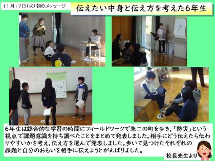 目の前の相手に,何をどうやって伝えるか考えた 6年生 学習発表会