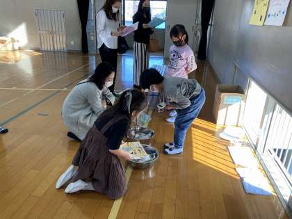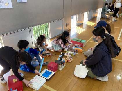 い組は多目的室,ろ組は体育館でした。どちらのクラスも,お家の方の温かい言葉かけと,子供たちと目線を合わせ,楽しそうに遊んでいただいていたことが印象的でした。ありがとうございました。