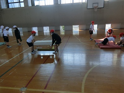跳び箱やマットの準備も自分たちで行っており,安全に活動できるように一人一人が頑張っています。