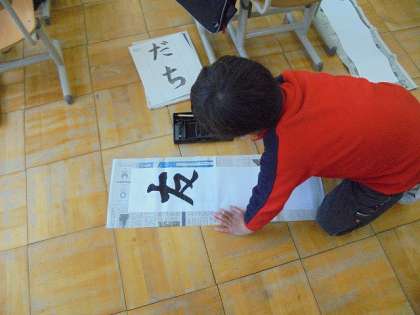 3年生から習字の学習が始まり,毛筆には慣れてきましたが,今回は初めての画仙紙。半紙より長くて細い画仙紙を前にみんなドキドキ。バランスよく書くのが難しかったようです。いつもより時間をかけて一生懸命仕上げました。これまでの学習を生かしてしっかり書けました。
