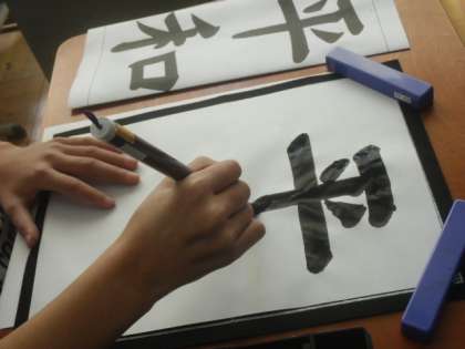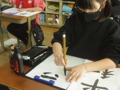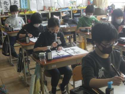 この1年間の締めくくりにぴったりの字でした。集中して,心を込めて書きました。平和な世の中になるよう願っています。今回で4年の習字の学習は最後です。道具を持ち帰りましたので,点検や補充をしておいてください。