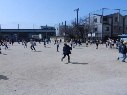 中間休み,運動場は子供たちであふれかえっています。