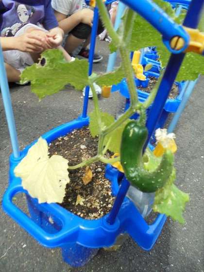 育てている野菜の観察をしました。花が咲いているもの,つぼみが出てきたもの,実ができてきたものといろいろですが,だんだん大きく育ってきています。毎日水やりをがんばっています。おいしい野菜になりますように。