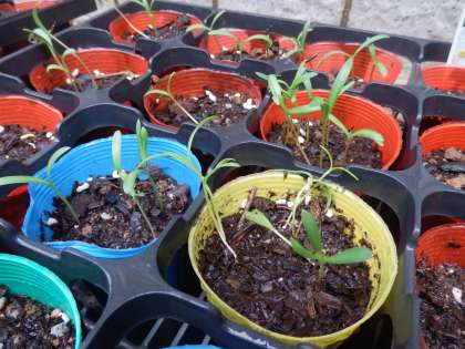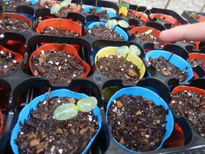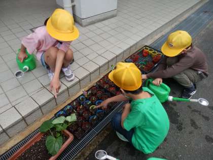 6月15日(火)朝,水やりに行くと,先週まいた「ひまわり」「コスモス」の芽が出ていました。「かわいいねぇ〜。」「芽が出るの早いねぇ!」と言いながら,芽が出てくるはやさに驚いていました。「かわいい芽はこれ!」と各々に指差しして,友達と話をしました。水やりをする時も,小さい芽に丁寧に優しく水をかけてあげる姿も定着してきました。もう少し大きくなったら,「ひまわり」「コスモス」は植え替え作業をする予定です。