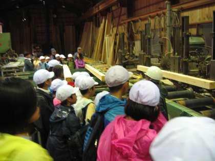 本校は,今回でこの製材所見学にお世話になって3年目になります。
