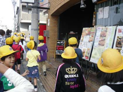 校区たんけんに行きました。春に行った時よりも,いろんなお店が見つけられました。次回は丸太町通より南側を探検する予定です。