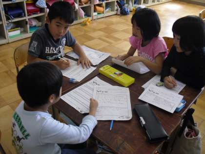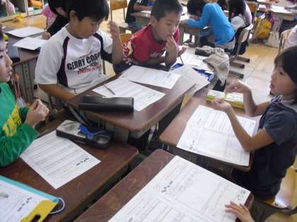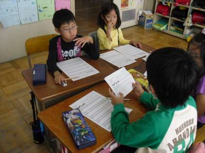 来週からのまちたんけんに向けて,各グループが準備をしています。インタビューの練習も始まりました。