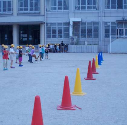 生活科では、身の回りにあるものを使って水遊びをしました。