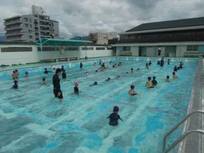 「ここ(胸あたり)ぐらいまで水あるかも!」「めっちゃ水増えてる!」「大の字浮きがいい」と興奮気味の子どもたちでした。