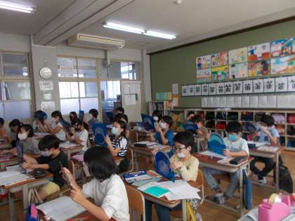 今週末は、星(はくちょう座)の観察の宿題を出しています。家に帰って観察できるように、はくちょう座の形や見える方角などを星座早見番板を使って確かめました。