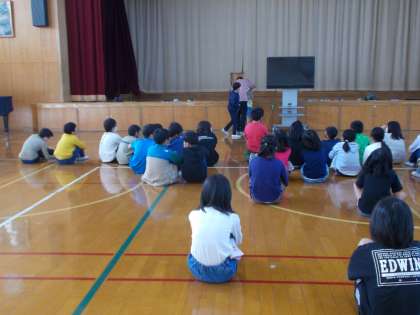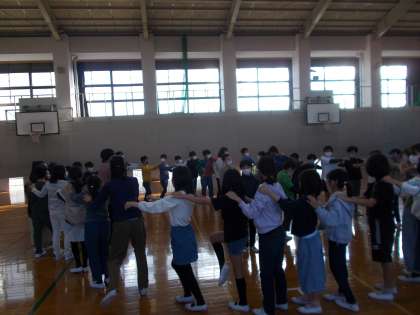 10月25日(火)学年で集まって、キャンプファイヤーの説明を受けました。そして、みんなで円になり、キャンプファイヤーの一部を練習しました。「静」と「動」めりはりをつけ、「盛り上がるところはしっかり盛り上がって楽しもう!」と話しをしました。