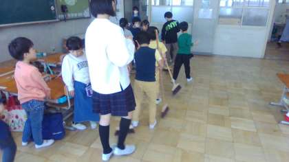 5月に入り、すっかり学校生活に慣れた様子の1年生の子どもたちです。4月の間は、1年生の教室は6年生が掃除をしてくれていました。上手に掃除をしている上級生の姿を見て「自分たちも掃除をやってみたい!」と掃除を始めました。朱二校伝統の「キラピカそうじ」の仲間入りです。6年生に教えてもらいながら、学校も心もキラキラピカピカに磨いています。