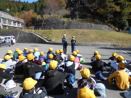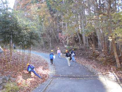 ネイチャービンゴは、グループごとに木の実や穴のあいた葉っぱ、鳥の声などのお題を探しながら所内を回りました。キノコやかりんの実、カエルやカニなどを見つけていました。多くの自然を見つけることができました。