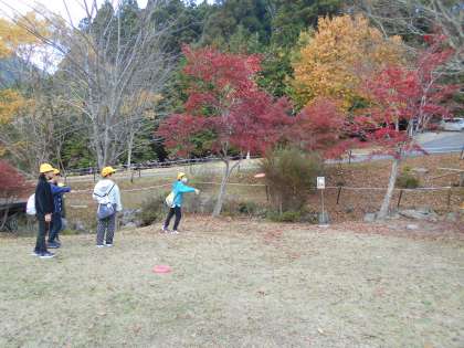 午後の1つ目の活動は、フライングディスクゴルフです。ディスクをまっすぐ投げるのが難しく苦労していましたが、楽しく活動することができました。