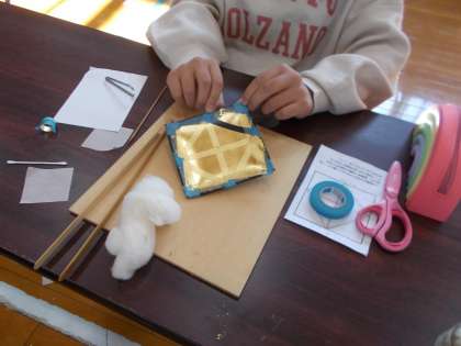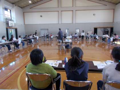 4年生全体で伝統工芸について学習しました。講師の方から金箔について教えていただき,様々なところで使われていることに気づきました。薄い金箔を見て子どもたちは「こんなにも薄いんだ!」と驚いていました。体験から金箔張りがとても難しいことを感じ、職人さんはこんなに難しいことをやっているんだと改めて伝統工芸の技の素晴らしさを感じました。