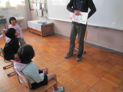 わくわくライブラリー委員会の企画で、秋のクロスワードパズルに取り組みました。図書館には選書会で購入した新しい図書がたくさん並んでいたので、手に取ってじっくり読みました。また、入佐先生に「しりとりのすきなおうさま」の読み聞かせをしていただきました。