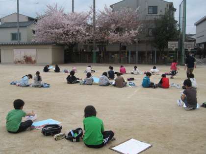 薄曇の天気ですが,本校の朱二桜はまだまだ見られます。