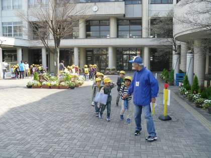 1年生では同じ方面の子どもたちで集まって集団下校をしています。