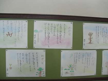 また、国語の教科書のはじめに載っている「わかば」の詩を視写しました。