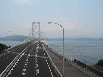 高い高い橋脚。下をのぞくと渦潮と観光船が見えました。