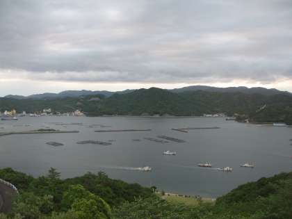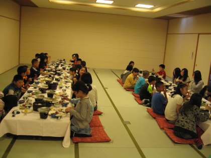 写真:早朝漁に出る漁船,朝食の様子,安富白土瓦での実習風景