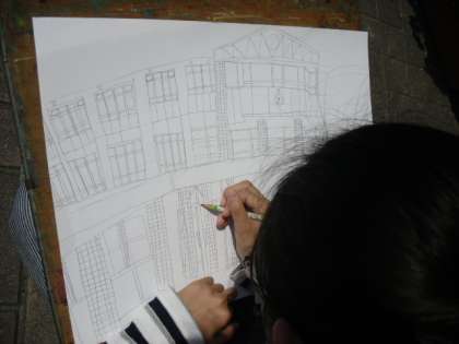 今は,学校の絵を描いています。みんな,細かなところまでよく見て,ていねいに描いています。