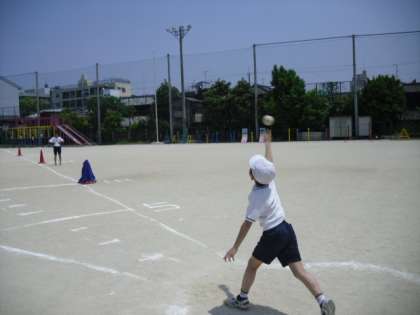 全校で「朱二スポーツテスト」を行ないました。5年生の中には,40m近くまで投げた子もいて,大いに沸きました。