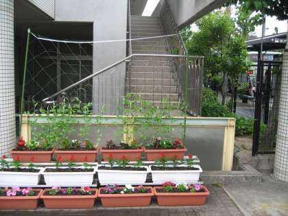 学校南門の花壇でも,地域ボランティアさんによる夏花壇への模様替えが進んでいます。