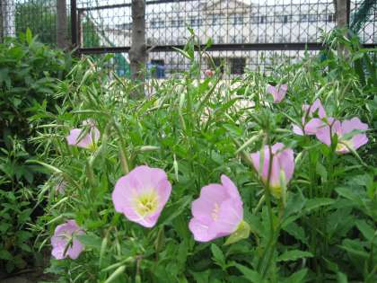 写真下:ヒルザキツキミソウ(とがって見えるのがこれから咲く花の数々)