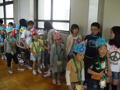2年生から5年生のお兄さんやお姉さんたちからは,名前入りのメダルをもらいました。6年生のお兄さんやお姉さんたちからは,王冠をもらいました。