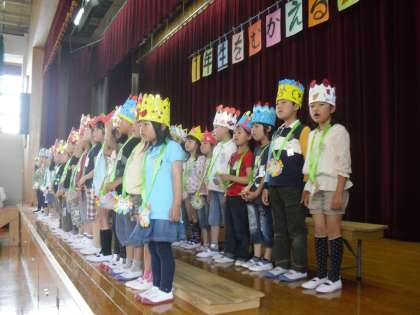 下校の時に,みんなでメダルをつけて王冠をかぶって,楽しそうに帰っていきました。