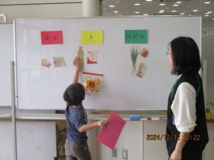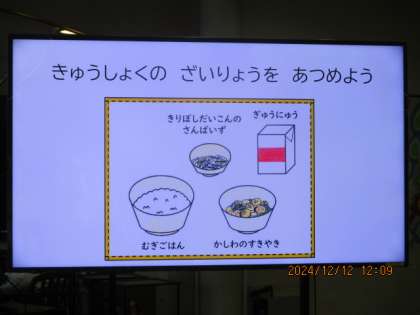 今日の4時間目は赤井先生とランチルームで今日の献立の材料集めをしました。まずは、献立を確認して、使われている材料を赤・黄・緑のお店にもらいにいきました。次に、ホワイトボードに分けてはりました。お麩やごま、切干し大根は本物の食材を受け取り、袋の上からさわらせてもらいました。昆布やごまはどこのお店にあるのか迷っていました。それから、給食の準備をして、使われている材料を確認しながら美味しくいただきました。