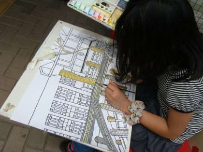 校舎の絵をていねいに書いています。