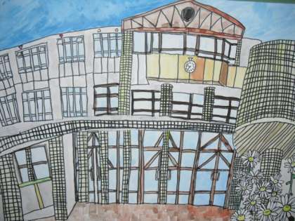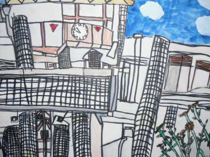 絵の具を使って細かなところにもこだわって色を塗りました。立体感を表すために,光と影を意識しました。力作です。