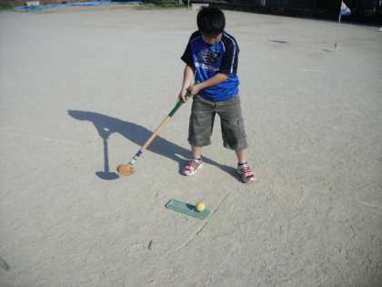 今日から部活動のグラウンドゴルフがスタートしました。5年生も希望者で体験をしました。かなり楽しかったようです。