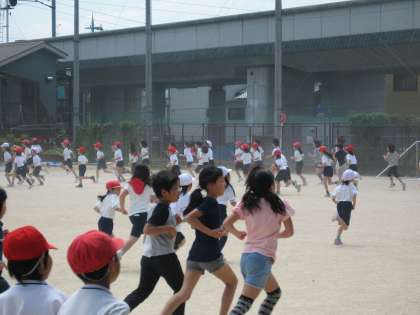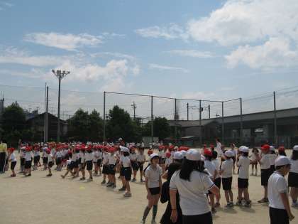 中間休みに,ダンスで体ならしをしてからジョギングタイムに入ります。