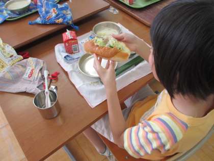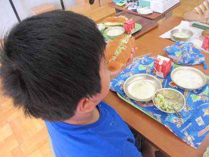 それでも子ども達は,大きな大きな口を開けて,美味しそうにハムサンドを食べていました。とても大きなパンでしたが,とても美味しかったので,アッと言う間に食べ終わっていました。