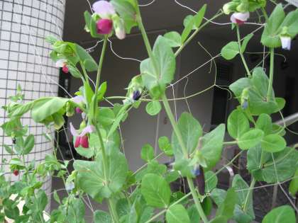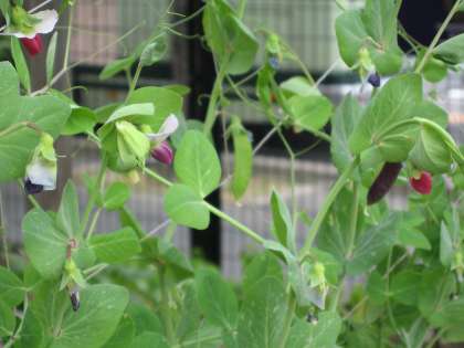 濃赤紫の実と莢が特徴であるツタンカーメンのエンドウマメ