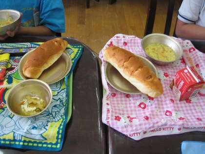 写真:高学年と低学年のパンの大きさ(左:低学年,右:高学年)