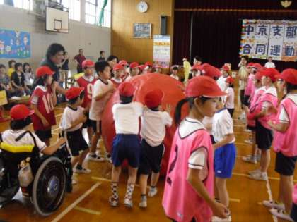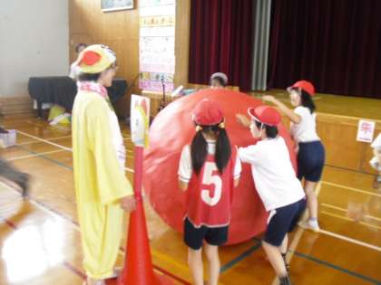 19日(火),本校で行なわれた育成学級合同運動会の「大玉ころころポン」に参加しました。みんなと一つになって盛り上がりました。