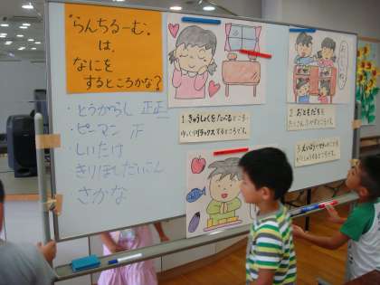 最初に「ランチル−ムってなにをするところかな?」と子どもたちにたずねました。