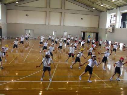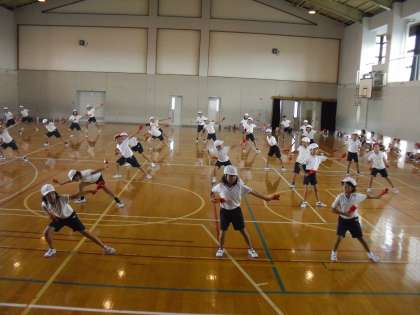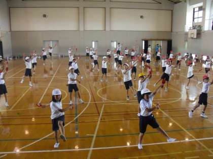 運動会で,は組・3・4年生の83人による,民舞「だんじり祭 ケヤキの神 朱二バージョン」を発表します。力強く,テンポが速い動きですが,みごとに踊りこなしている子どもたちです。休憩の合間も,自主的に動きのおさらいをするなど意欲満々で練習に励んでいます。明日の練習から,運動場に出て練習をします。運動会当日の仕上がりが楽しみです。